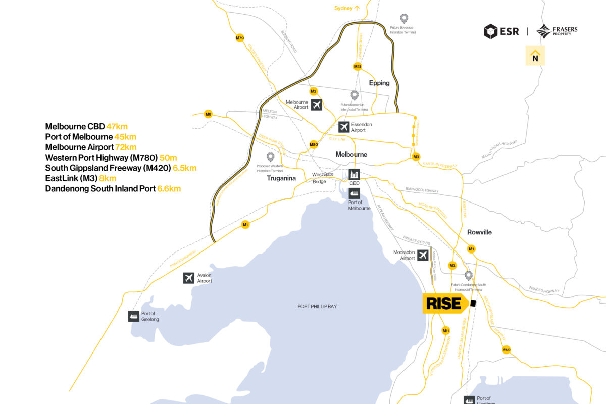 Strategically positioned within Melbourne’s sought-after southeast, RISE is a 64-hectare logistics hub offering lots from approx. 958m² to 1,614m². Zoned UGZ2 (Urban Growth Zone), the estate provides flexibility for developers, investors, and owner-occupiers seeking an exceptional location with strong transport connectivity and direct access to key arterials.