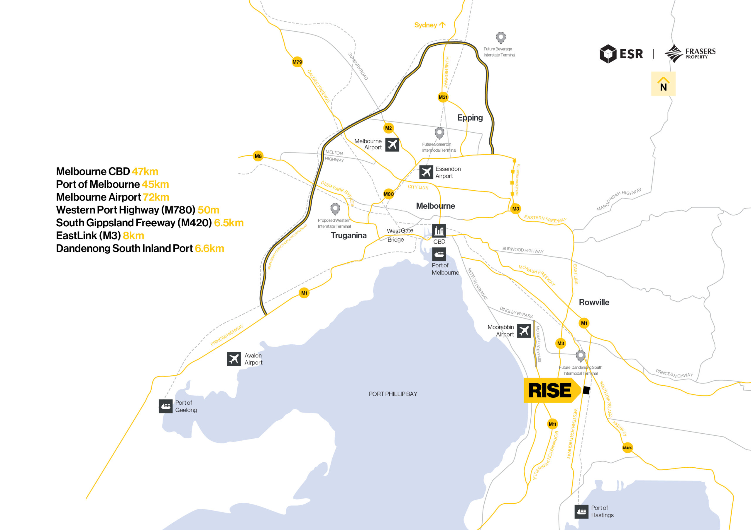Strategically positioned within Melbourne’s sought-after southeast, RISE is a 64-hectare logistics hub offering lots from approx. 958m² to 1,614m². Zoned UGZ2 (Urban Growth Zone), the estate provides flexibility for developers, investors, and owner-occupiers seeking an exceptional location with strong transport connectivity and direct access to key arterials.