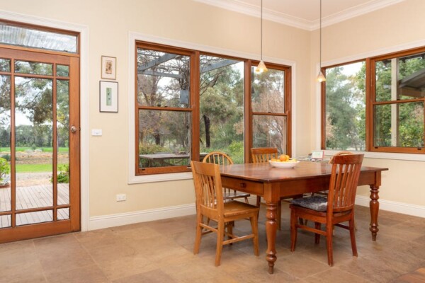 – The Jika homestead is privately located in established garden surrounds. The original part of the homestead was built in the early 1900’s and comprises rendered mudbrick construction with timber verandas and northly aspect which complements a weatherboard extension renovated in 2001*. Country style features are consistent throughout the homestead which include high 10’ ceilings, open plan kitchen with living and dining area, formal dining room, four bedrooms plus study, two bathrooms (main with ensuite, spacious changeroom and walk-in wardrobe) and laundry. Adjacent to the homestead is a three-bedroom brick veneer guests residence which features kitchen, dining, living, laundry and carport. Added extras include slow combustion heater and ducted evaporative cooling system.