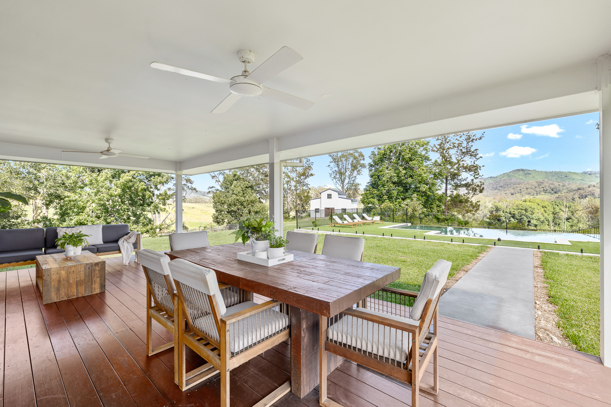 Outdoors, a stunning infinity pool creates a resort-style setting, perfect for relaxing while taking in the surrounding views. Adding to the appeal is a spacious barn that offers incredible versatility. This can easily be transformed into additional guest accommodation, a private retreat, or an entertainment space. Positioned to overlook the serene Ellenborough River, the barn presents a unique opportunity to create a one-of-a-kind riverside gathering area, blending rustic character with breathtaking natural scenery.